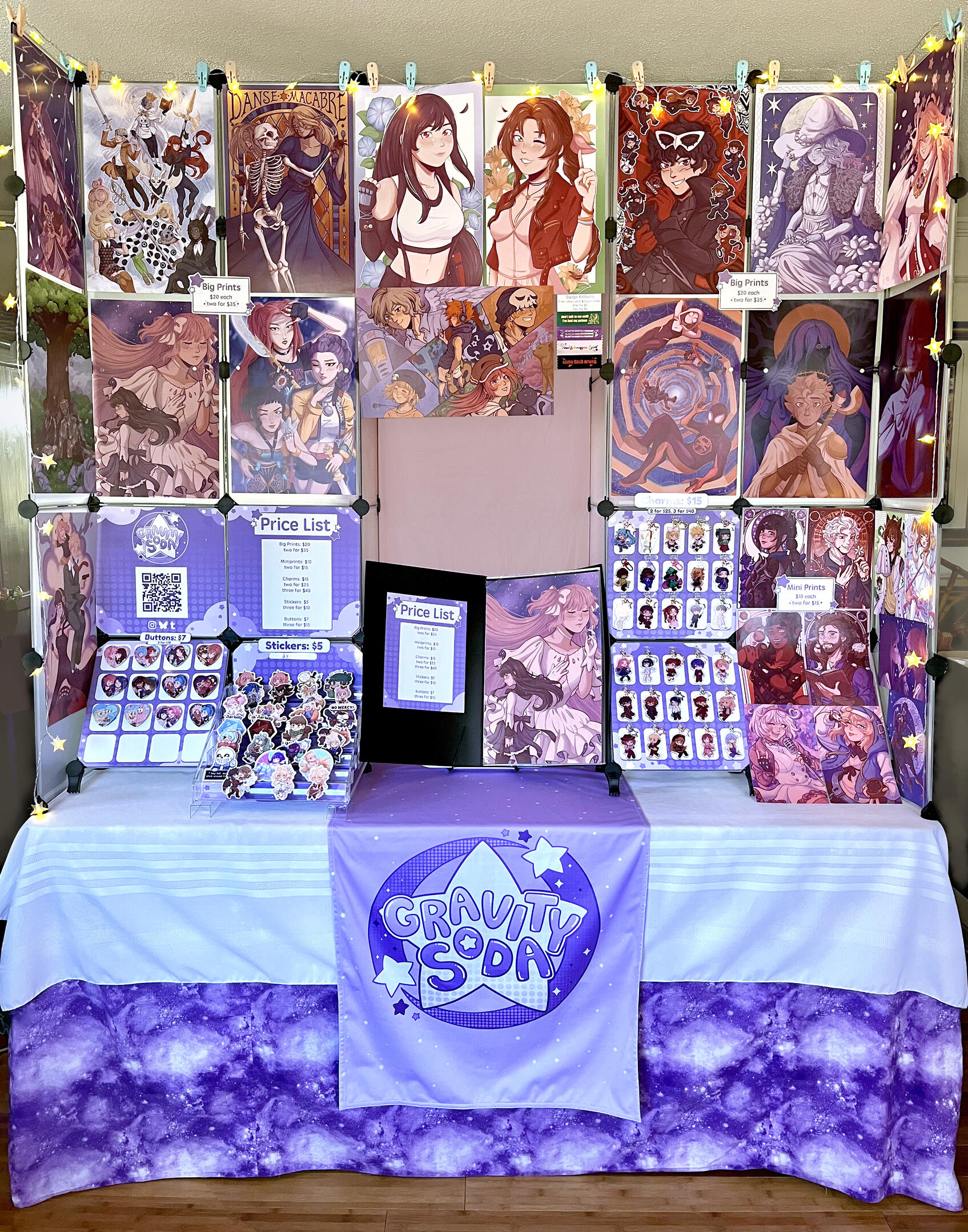 Hey! I'm Cay! You may also know me as Soda online.I'm the owner and artist behind Gravitysoda Creations. I create art inspired by Japanese pop culture, animation, and comics with a cute, sparkly twist!Currently, I operate primarily through conventions, particularly in the Midwest region, and freelance commission work.I have worked at various conventions including, but not limited to, the Chicago Comic & Entertainment Expo, Nan Desu Kan, Planet Comicon, 2D Con, Anime Iowa, and Planet Anime.For professional inquiries, don't hesitate to reach out via social media or email me at [email protected].